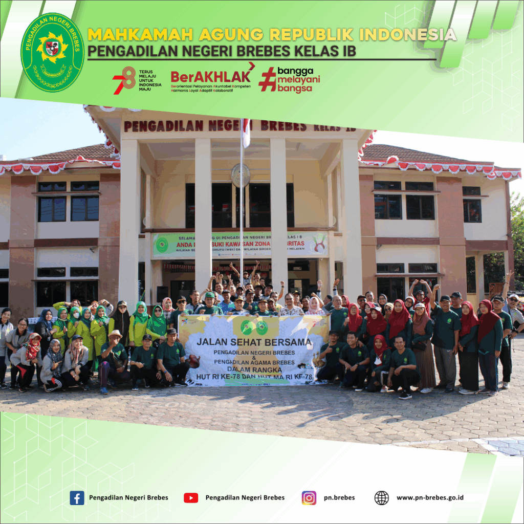 Jalan Sehat Bersama Pengadilan Negeri Brebes dan Pengadilan Agama Brebes Dalam Rangka HUT RI ke-78 dan HUT MA RI ke-78.