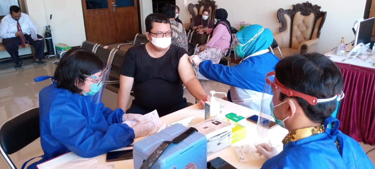 (Brebes, 16 Maret 2021) Pengadilan Negeri Brebes melaksanakan Kegiatan Vaksinasi ke-2 pada hari Selasa (16/3). Pelaksanaan Vaksinasi ini dikiuti oleh seluruh jajaran pegawai Pengadilan Negeri Brebes, mulai dari Ketua Pengadilan Negeri Brebes Bpk. Tornado Edmawan, SH., MH., Hakim-Hakim, Bagian Kepaniteraan, dan Kesekretariatan. Kegiatan vaksinasi berjalan dengan lancar.