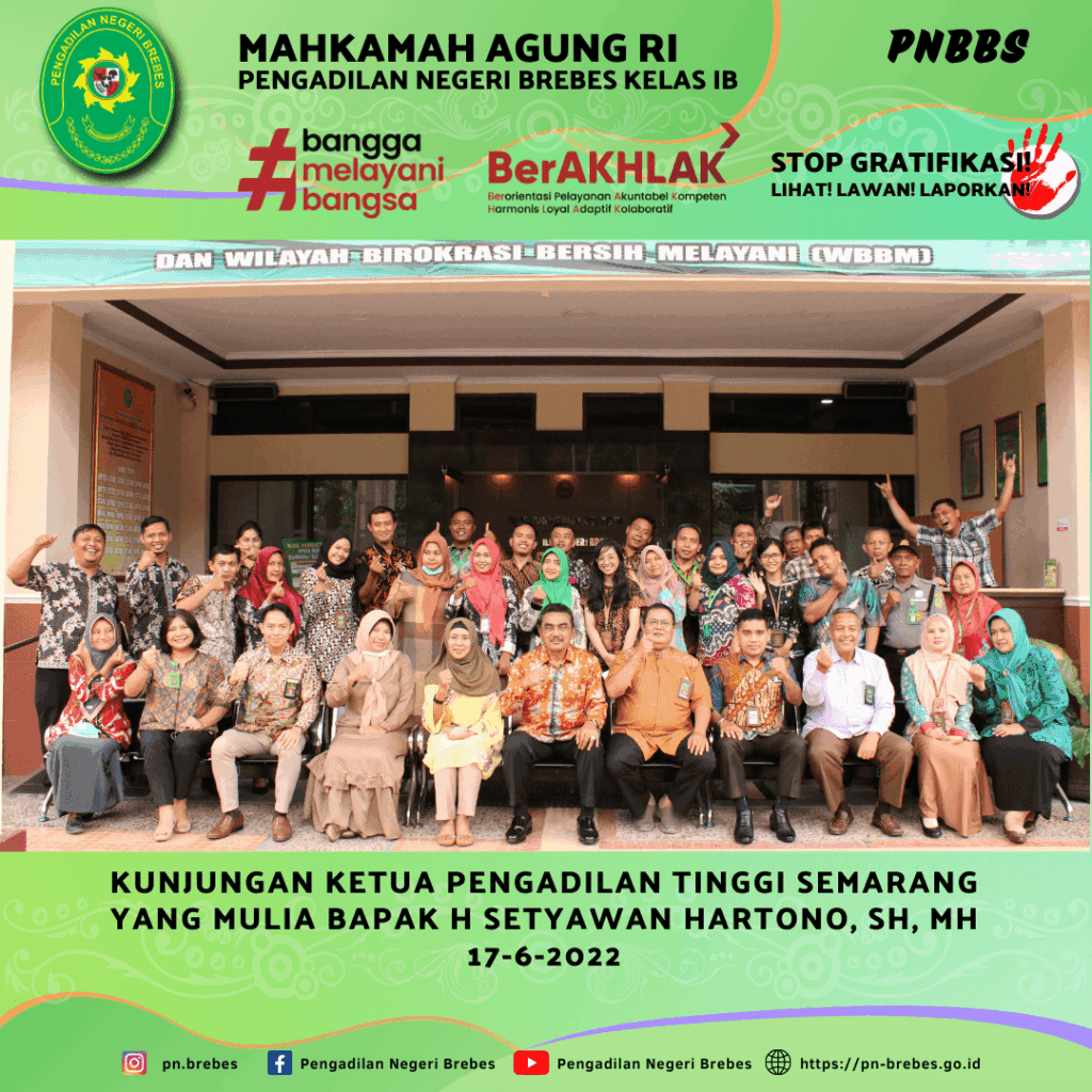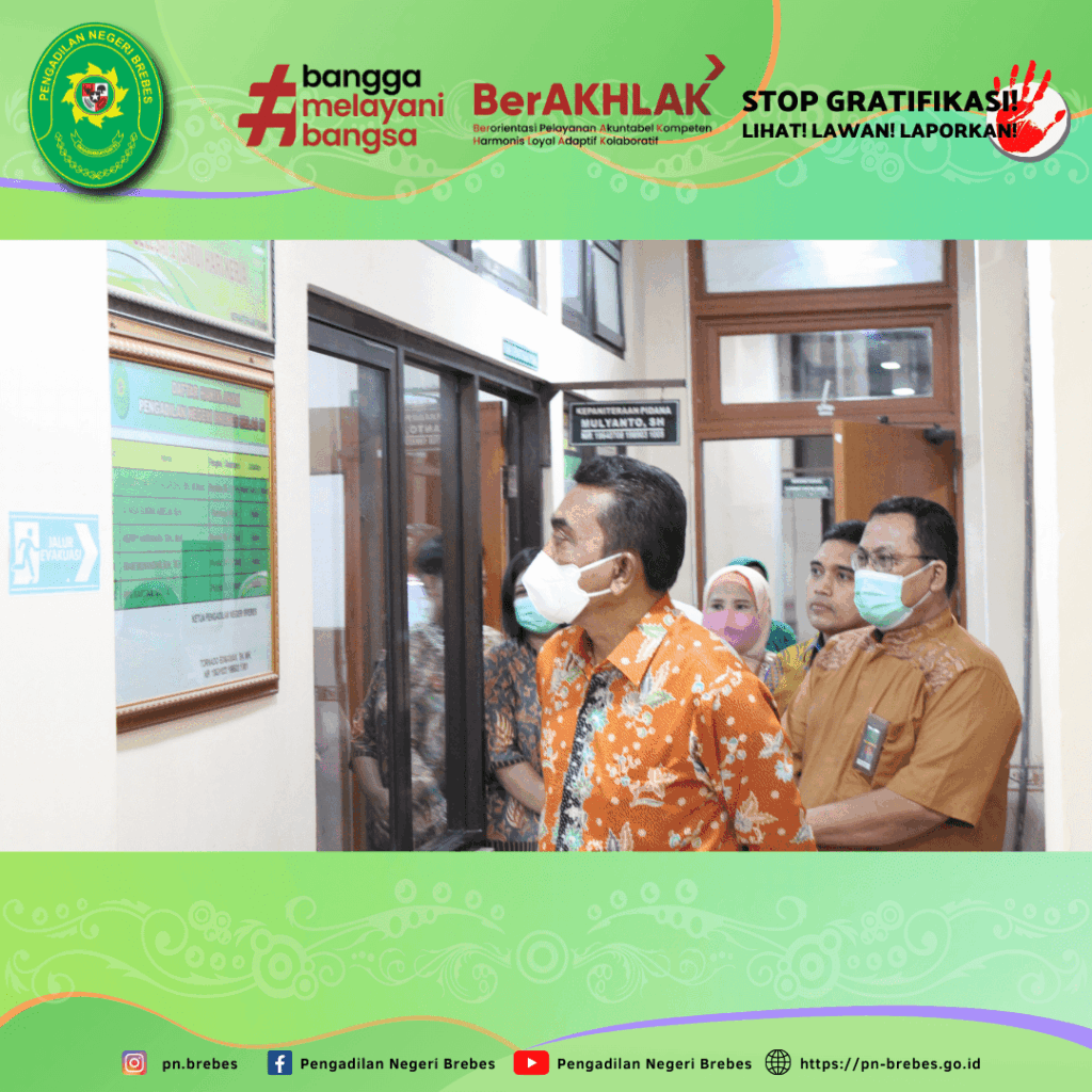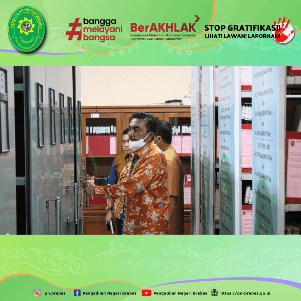 Pengadilan Negeri Brebes Kelas IB menerima Kunjungan Ketua Pengadilan Tinggi Semarang Yang Mulia Bapak H. Setyawan Hartono, S.H., M.H. Dalam kunjungan ini Yang Mulia Bapak H. Setyawan Hartono, S.H., M.H. melakukan pengecekan terhadap kesiapan layanan di PTSP Pengadilan Negeri Brebes, Mengecek Nilai Penyelesaian Perkara, kemudian melanjutkan kunjungan ke setiap ruangan salah satunya Ruang Arsip.