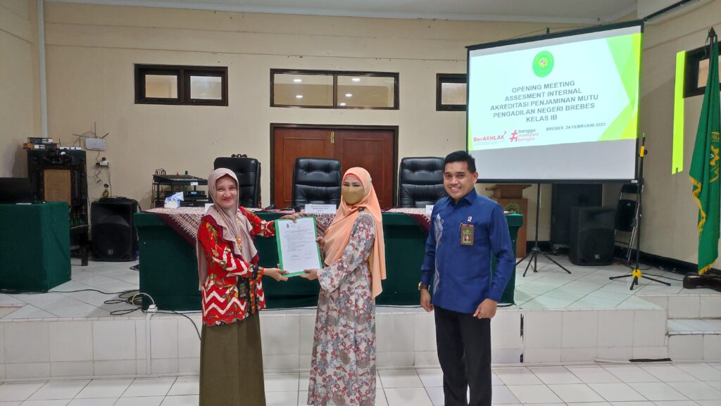 Pengadilan Negeri Brebes Kelas IB melaksanakan kegaiatan Opening Meeting Assesment Internal Akreditasi Penjaminan Mutu. Dibuka oleh Ketua Pengadilan Negeri Brebes Bapak Dr. Dedy Muchti Nugroho, S.H., M.Hum, kemudian dilanutkan oleh QMR Ibu Merry Harianah, S.H., M.H., dan Lead Assesor Ibu Yustisianita Hartati, S.H., M.H.