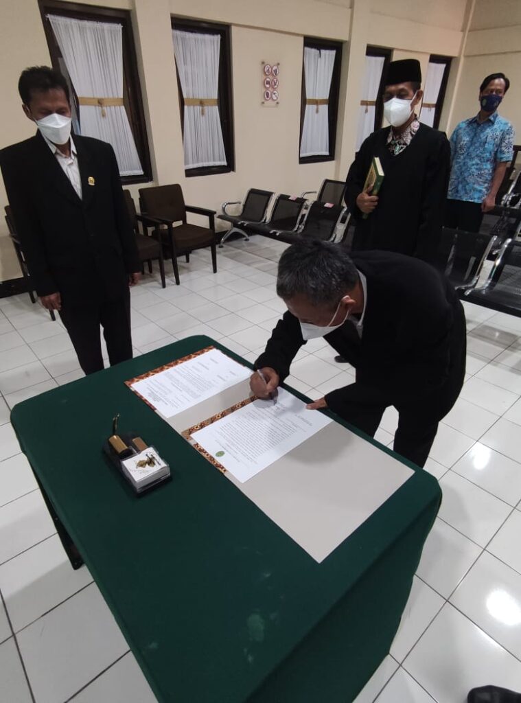 Brebes, 8 Juli 2021 | Pengadilan Negeri Brebes melaksanakan kegiatan Pengambilan Sumpah dan Pelantikan Jabatan Panitera Pengganti Bpk. Epen Supendi