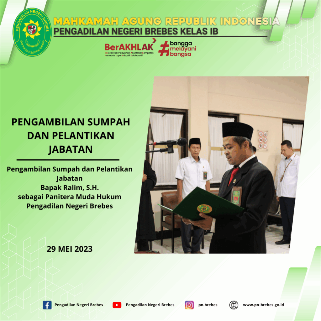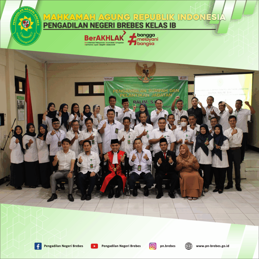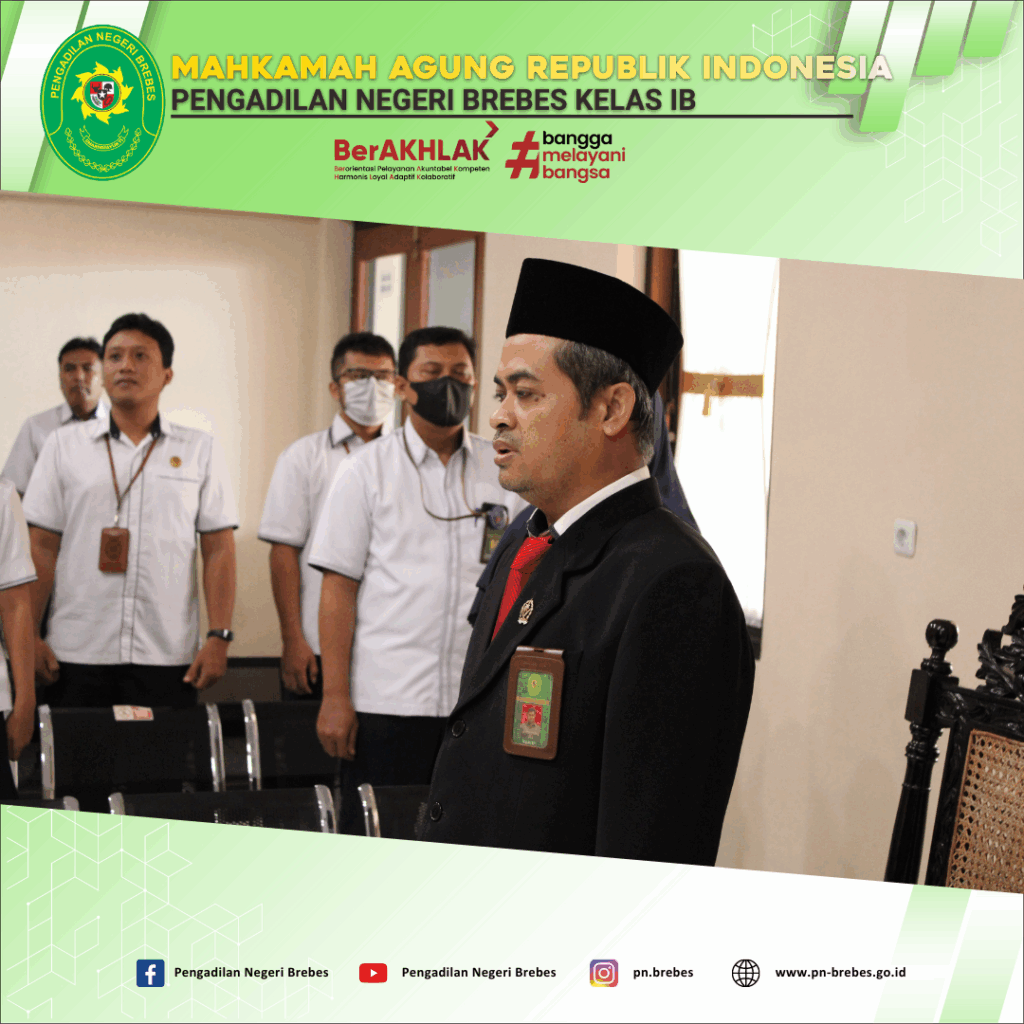 Pengadilan Negeri Brebes Kelas IB melaksanakan Kegiatan Pengambilan Sumpah dan Pelantikan Jabatan Bapak Ralim, S.H. sebagai Panitera Muda Hukum.