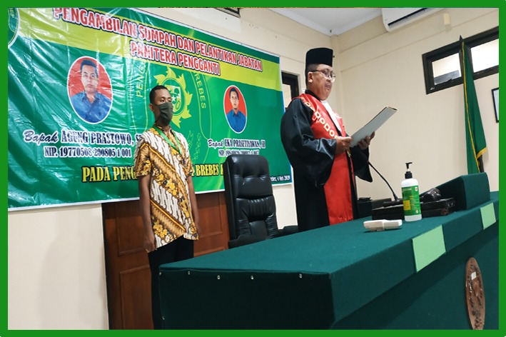 (Brebes 04 Juni 2020) Pada Hari Kamis, Bertempat diruang Sidang Candra Pengadilan Negeri Brebes Kelas IB dilakukan Pengambilan Sumpah dan Pelantikan Jabatan Panitera Pengganti Pengadilan Negeri Brebes yaitu : 1. Bapak Agung Prastowo, SH. 2. Bapak Eka Prasetiyawan, SH. yang sebelumnya menjabat sebagai Juru Sita Pengganti pada Pengadilan Negeri Pekalongan Kelas IB.