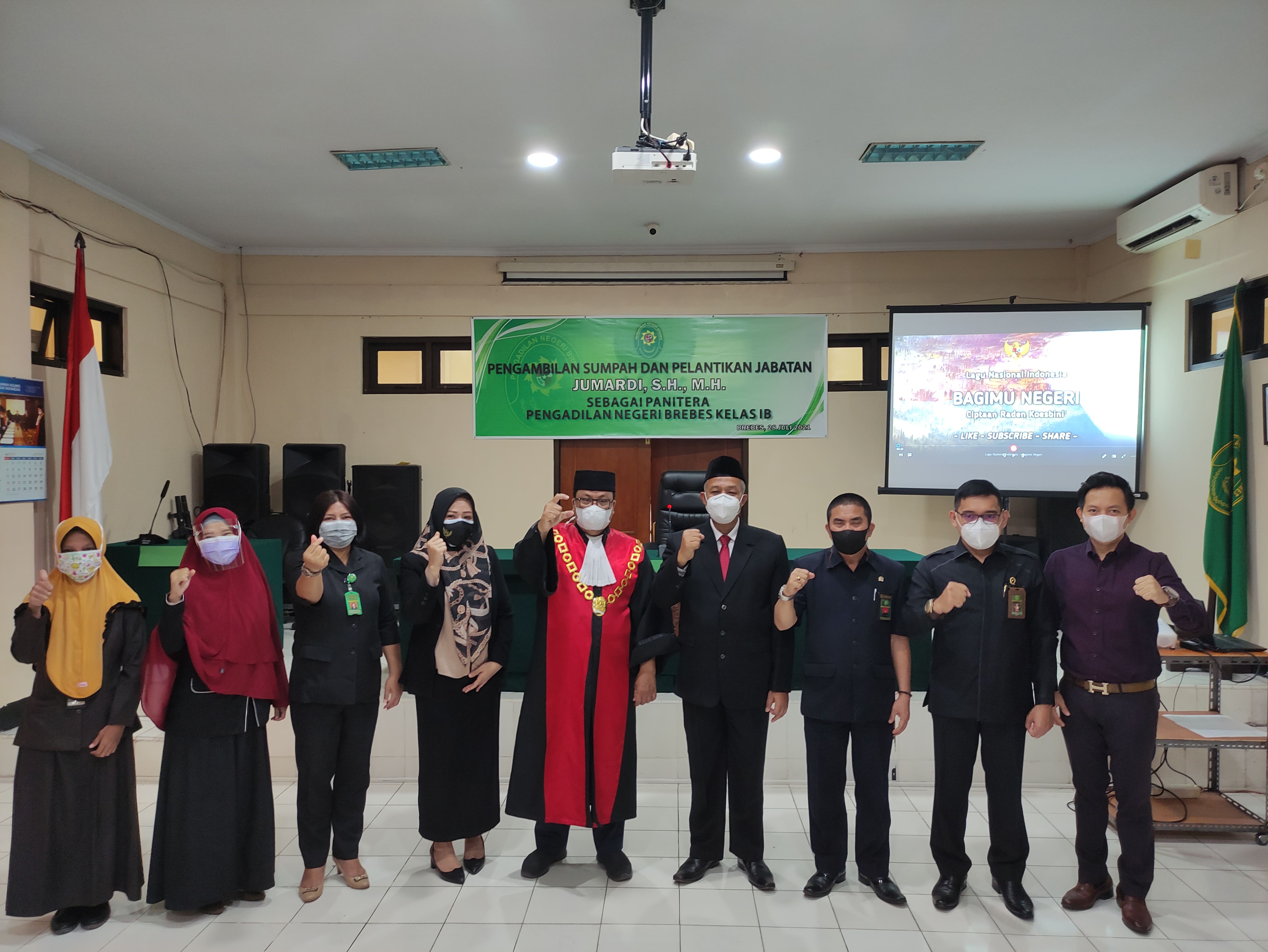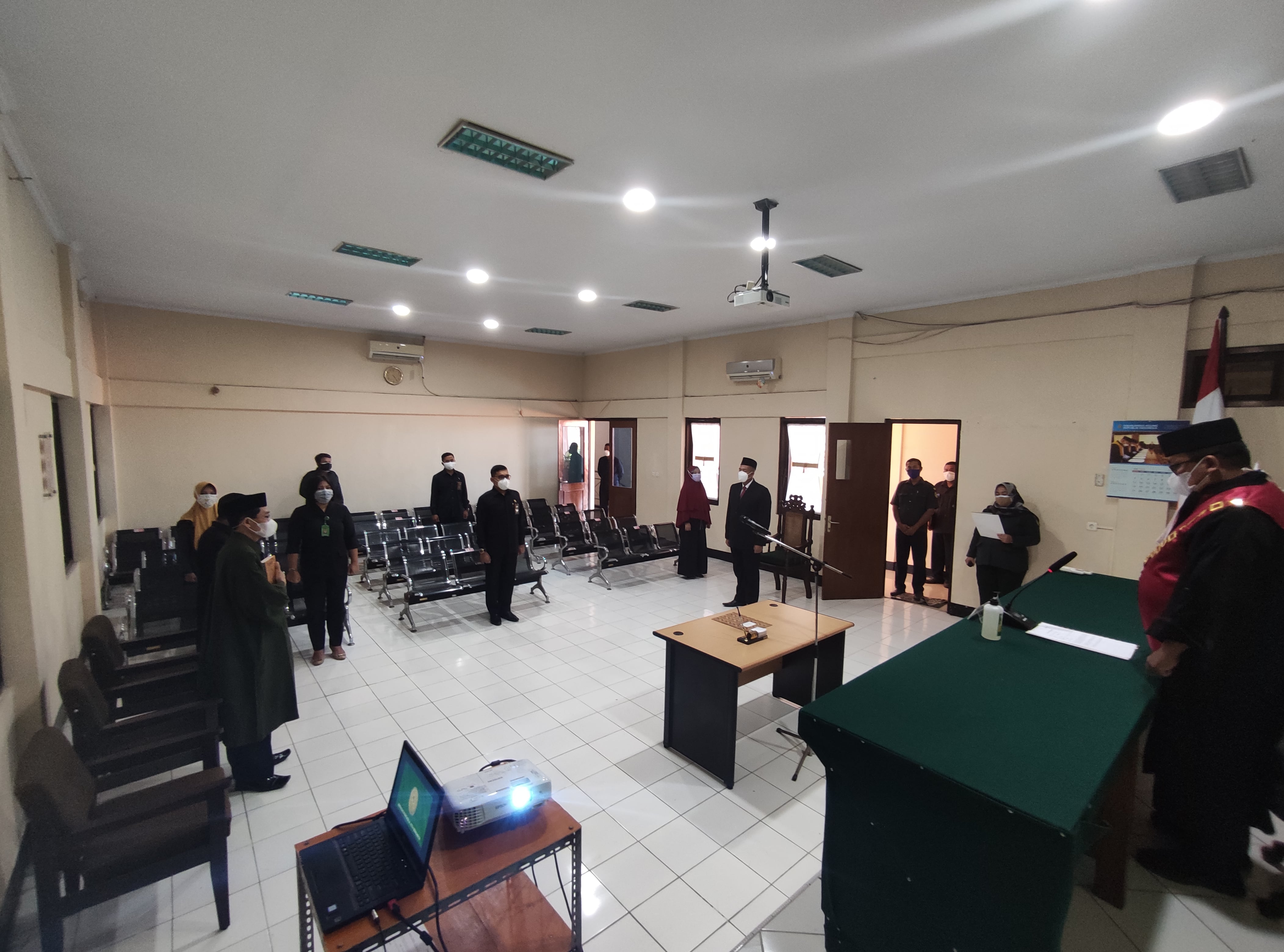 Acara pelantikan diselenggarakan di Ruang Sidang Candra dengan menerapkan protokol kesehatan yang sangat ketat yang dihadiri oleh para Hakim, Panitera Muda, Kepala Sub Bagian, Panitera Pengganti dan pegawai Pengadilan Negeri Brebes yang melaksananakan WFO.
