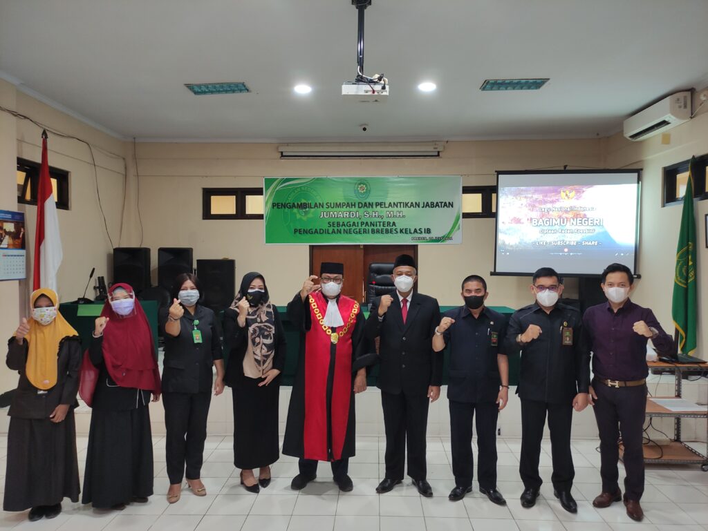 Brebes, Pada Hari Rabu, Tanggal 28 Juli 2021 telah diselenggarakan acara Pelantikan dan Pengambilan Sumpah Jabatan Panitera Pengadilan Negeri Brebes yaitu Bapak Jumardi, S.H., M.H., yang sebelumnya menjabat sebagai Panitera pada Pengadilan Negeri Tanjung Jabung Timur.