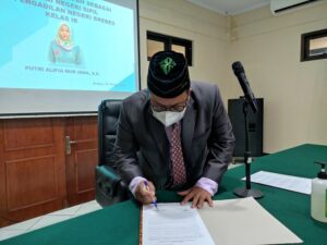 Pengadilan Negeri Brebes Kelas IB melaksanakan kegiatan Pengambilan Sumpah sebagai Pegawai Negeri Sipil atas nama Ibu Putri Alifia Nur Isma, S.H. Kegiatan ini dipimpin langsung oleh Ketua Pengadilan Negeri Brebes Bapak Tornado Edmawan, S.H., M.H. Kegiatan tersebut dihadiri oleh seluruh pegawai Pengadilan Negeri Brebes dan berlangsung dengan hikmat.