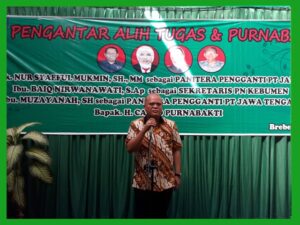 (Brebes, 03 Mei 2019) Bertempat di Ruang Tunggu Ramah Anak diadakan Acara Pengantar Alih Tugas Bapak Panitera Syaeful Mukmin, SH., MM sebagai Panitera Pengganti PT Jawa Tengah. Ibu Baiq Nirwanawati, S.Ap. Sebagai Sekretaris PN Kebumen, Ibu Muzayanah, SH Sebagai Panitera Pengganti PT Jawa Tengah dan H. Carso Purnabakti. Acara tersebut dihadirir Oleh Segenap Hakim, Pejabat Struktural dan Fungsional, Karyawan/ti Serta Honorer PN Brebes dan juga dihadiri Kepala Kejaksaan Negeri Brebes dan para Jajarannya.