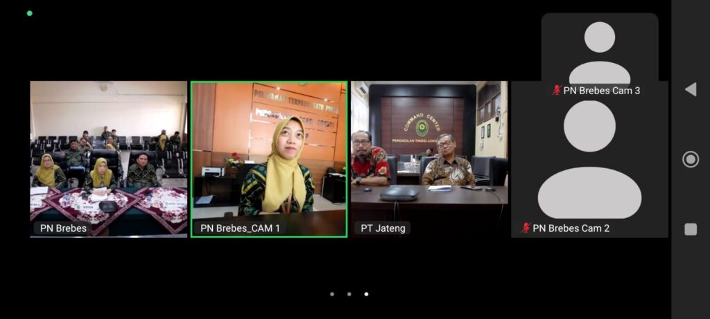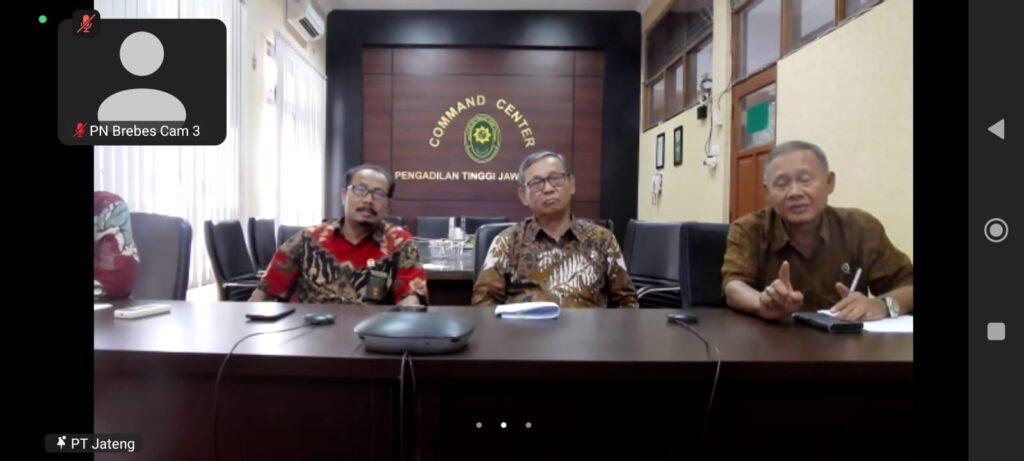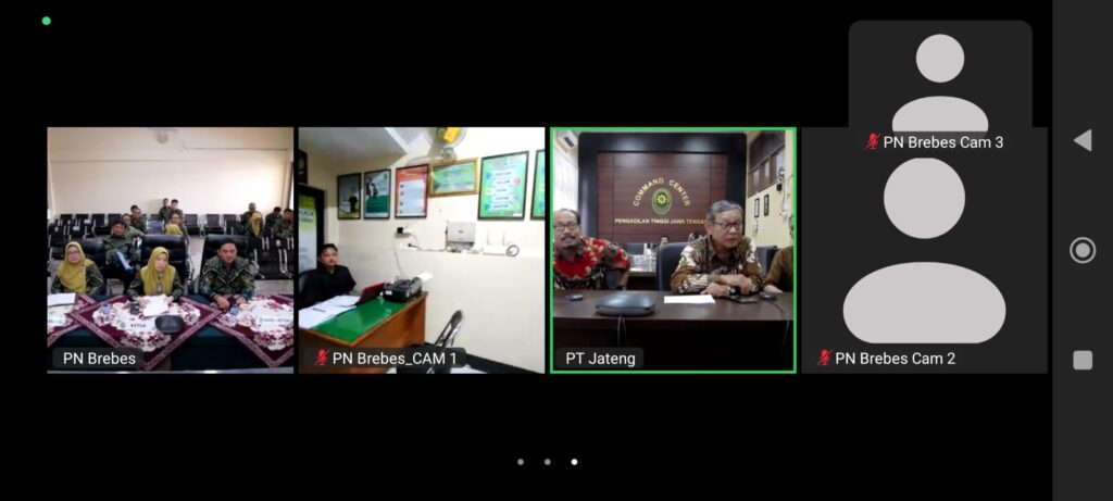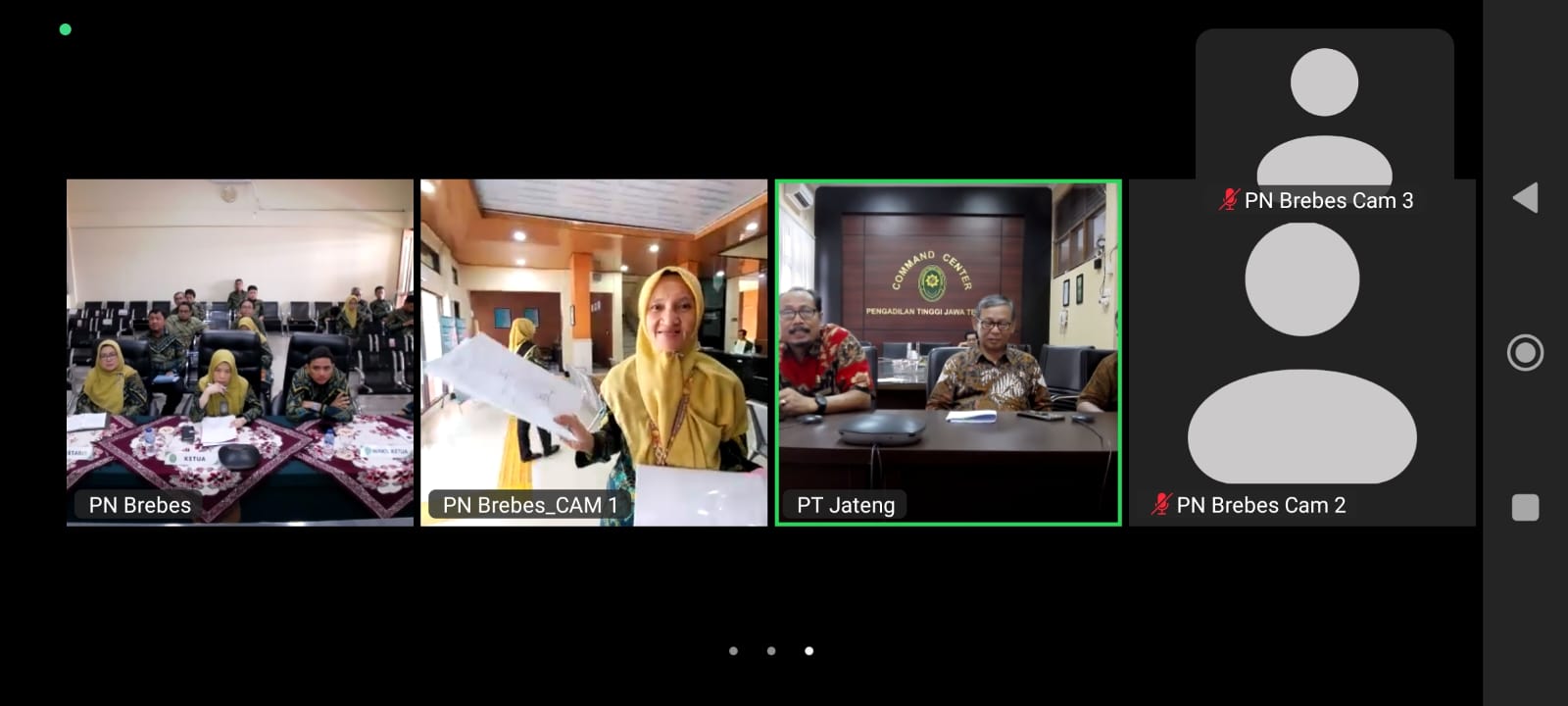 Pelaksanaan kegiatan Pengawasan Daerah di Pengadilan Negeri Brebes Kelas IB oleh Pengadilan Tinggi Jawa Tengah dalam rangka kegiatan Pengawasan Reguler Pengadilan Triwulan 3 di Wilayah Hukum Pengadilan Tinggi Jawa Tengah yang dilakukan secara daring melalui zoom. Pelaksanaan pengawasan ini dipimpin oleh Bapak Jahuri Effendi, S.H. bersama Bapak Ari Jiwantara, S.H., M.Hum. dan bapakHastopo, S.H., M.H. beserta tim.