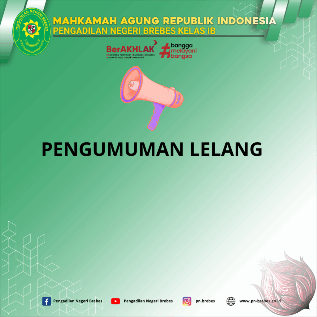 Berdasarkan surat dari Kantor Pelayanan Kekayaan Negara dan Lelang (KPKNL) Tegal Nomor : S-519/KNL.0904/2024 Tanggal 22 April 2024, Tentang Penetapan Jadwal Lelang, dengan ini diumumkan bahwa Pengadilan Negeri Brebes melalui KPKNL Tegal akan melaksanakan Lelang melalui internet (open bidding).