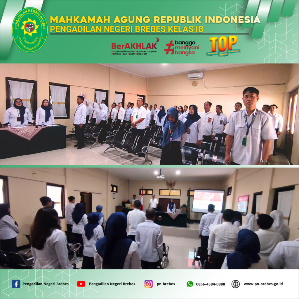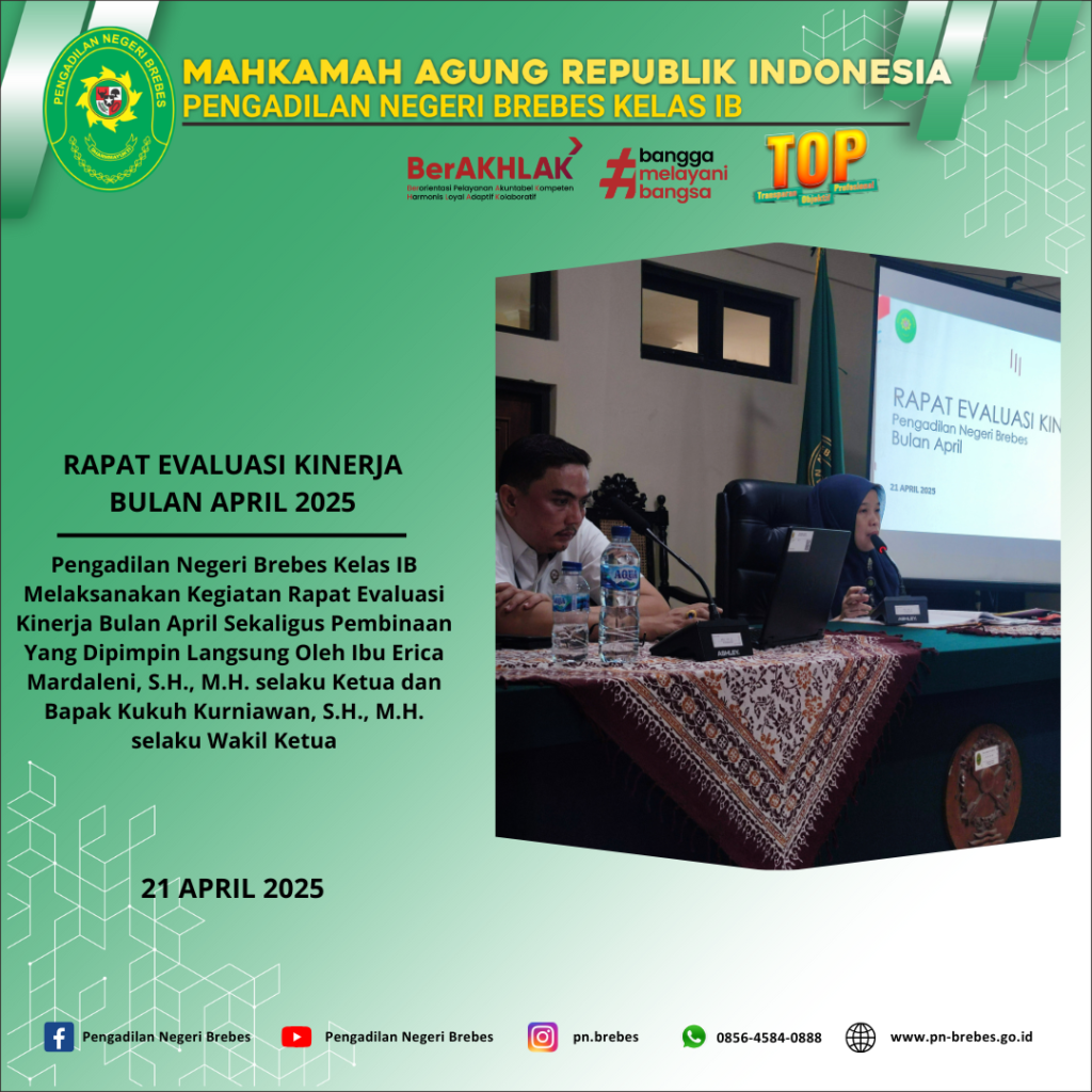 Pengadilan Negeri Brebes Kelas IB Melaksanakan Kegiatan Rapat Evaluasi Kinerja Bulan April Sekaligus Pembinaan Yang Dipimpin Langsung Oleh Ibu Erica Mardaleni, S.H., M.H. selaku Ketua dan Bapak Kukuh Kurniawan, S.H., M.H. selaku Wakil Ketua.
