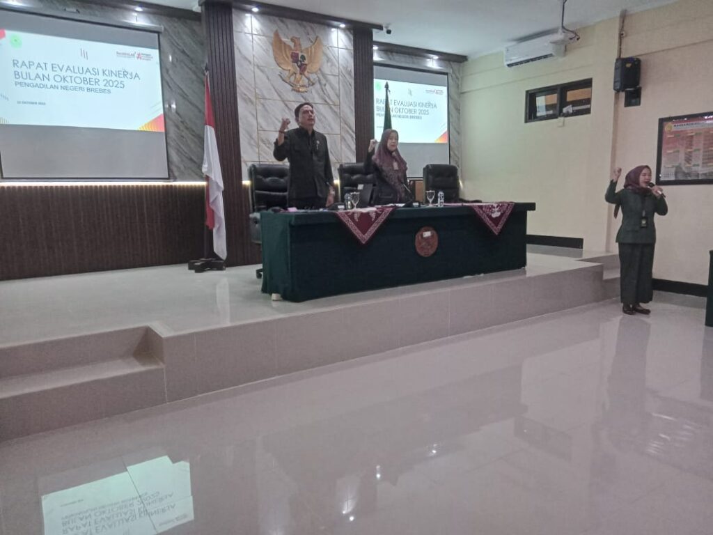 Pengadilan Negeri Brebes Kelas IB melaksanakan kegiatan Rapat Evaluasi Kinerja Bulan Oktober yang dipimpin oleh Ibu Erica Mardaleni, S.H., M.H. selaku ketua bersama Bapak Kukuh Kurniawan, S.H., M.H. selakuk wakil ketua. Giat rapat ini diikuti oleh seluruh hakim, pegawai dan PPPK Pengadilan Negeri Brebes.