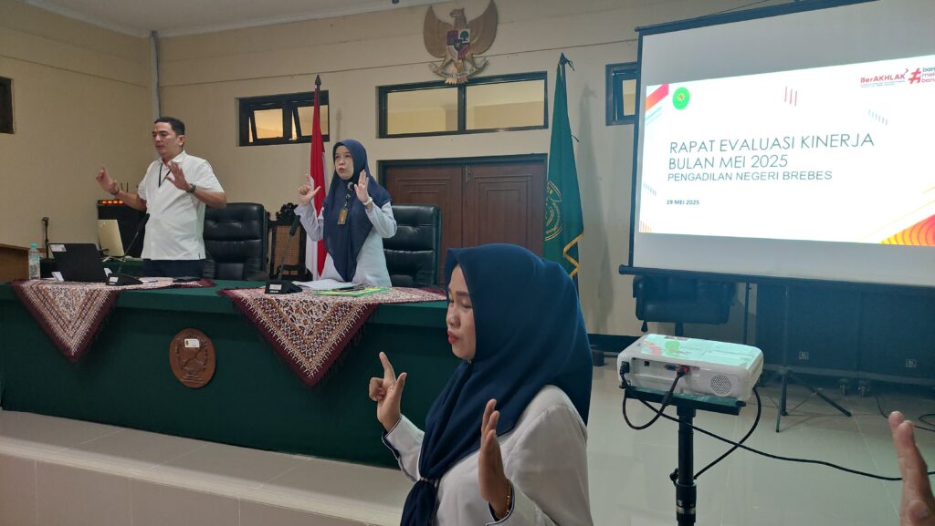 Pengadilan Negeri Brebes Kelas IB Melaksanakan Kegiatan Rapat Evaluasi Kinerja Bulan Mei Sekaligus Pembinaan Yang Dipimpin Langsung Oleh Ibu Erica Mardaleni, S.H., M.H. selaku Ketua dan Bapak Kukuh Kurniawan, S.H., M.H. selaku Wakil Ketua