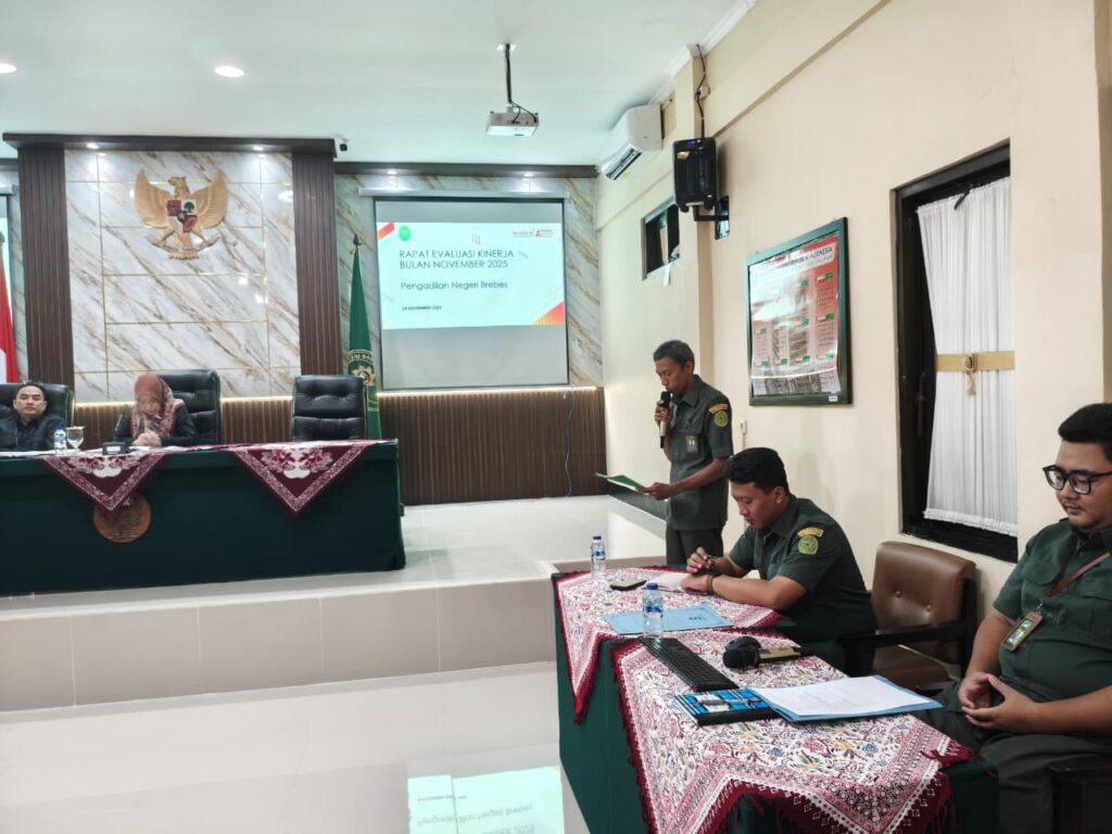Pengadilan Negeri Brebes Kelas IB melaksanakan kegiatan Rapat Penyusunan Dokumen SAKIP 2025. Kegiatan ini dipimpin langsung oleh Ibu Erica Mardaleni, S.H., M.H. selaku Ketua dan Bapak Kukuh Kurniawan, S.H., M.H. selaku Wakil Ketua. Rapat Penyusunan ini dilaksankan bertujuan untuk menyelaraskan dan membahas mengenai Sistem Akuntabilitas Kinerja Instansi Pemerintah (SAKIP), yang bertujuan untuk meningkatkan akuntabilitas dan kinerja instansi pemerintah. Dokumen-dokumen utama yang dibahas meliputi Laporan Kinerja Instansi Pemerintah (LKjIP), Rencana Kinerja Tahunan (RKT), Perjanjian Kinerja Tahunan (PKT), dan Indikator Kinerja Utama (IKU).