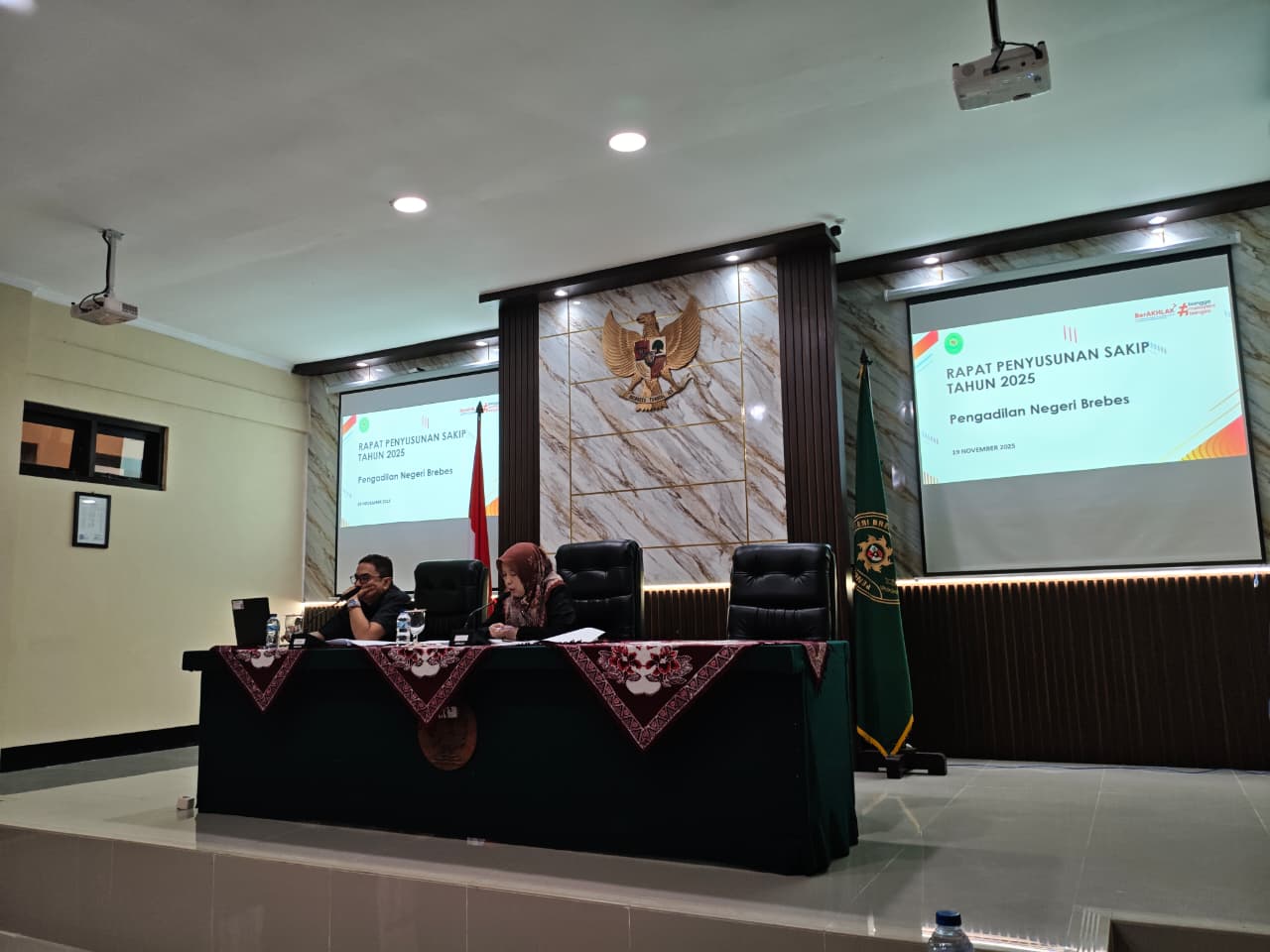 Pengadilan Negeri Brebes Kelas IB melaksanakan kegiatan Rapat Penyusunan Dokumen SAKIP 2025. Kegiatan ini dipimpin langsung oleh Ibu Erica Mardaleni, S.H., M.H. selaku Ketua dan Bapak Kukuh Kurniawan, S.H., M.H. selaku Wakil Ketua. Rapat Penyusunan ini dilaksankan bertujuan untuk menyelaraskan dan membahas mengenai Sistem Akuntabilitas Kinerja Instansi Pemerintah (SAKIP), yang bertujuan untuk meningkatkan akuntabilitas dan kinerja instansi pemerintah. Dokumen-dokumen utama yang dibahas meliputi Laporan Kinerja Instansi Pemerintah (LKjIP), Rencana Kinerja Tahunan (RKT), Perjanjian Kinerja Tahunan (PKT), dan Indikator Kinerja Utama (IKU).