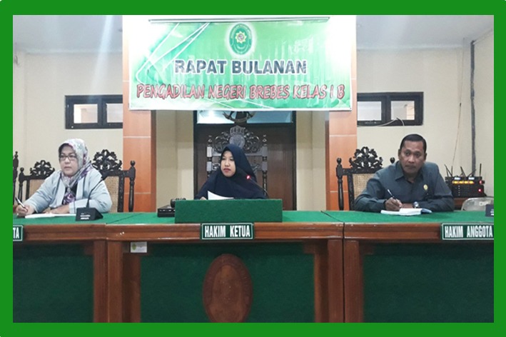 (Brebes, 06 Agustus 2019) Bertempat di ruang sidang Cakra Pengadilan Negeri Brebes, diadakan Rapat Bulanan yang dihadiri segenap Hakim, Karyawan/ti,