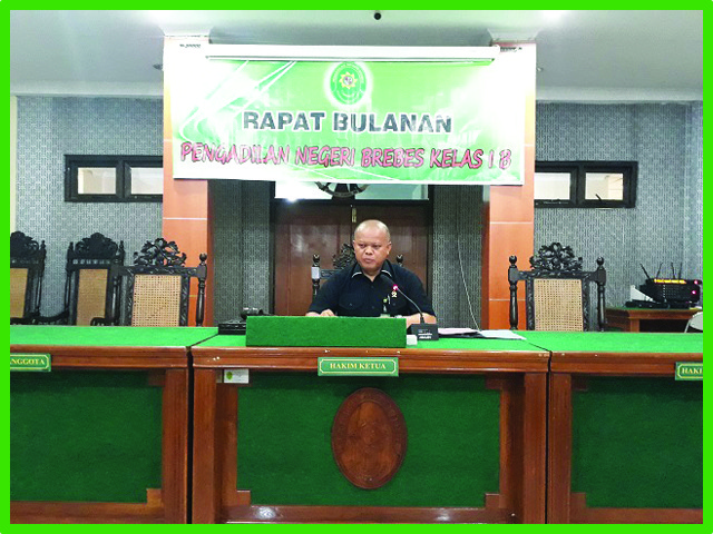 (Brebes, 19 Maret 2019) Bertempat di ruang sidang Cakra Pengadilan Negeri Brebes, diadakan Rapat Bulanan yang dihadiri segenap Hakim, Karyawan/ti, dan Honorer PN Brebes dipimpin langsung oleh Ketua PN Brebes Bpk. Edi Saputra Pelawi, SH.MH, dalam rapat tersebut Ketua PN Brebes Memonitoring Evaluasi SIPP PN Brebes agar lebih di tingkatkan terus mengingat masih memasuki awal bulan harus bisa meningkat. terutama untuk perkara-perkara ysng belum putus agar segera diputus. Pengecekan kembali berkas perkara Banding, Kasasi dan juga panjar biaya barang kali ada yang masih belum di input kedalam SIPP untuk segera di masukkan. Ketua PN Brebes juga berpesan agar semua perruangan mengecek Job Description agar disamakan sesuai dengan Perma No. 7 Tahun 2015 dan penataan Ruang Kerja agar lebih transparan mengingat PN Brebes sudah mendeklarasikan Zona Integritas.