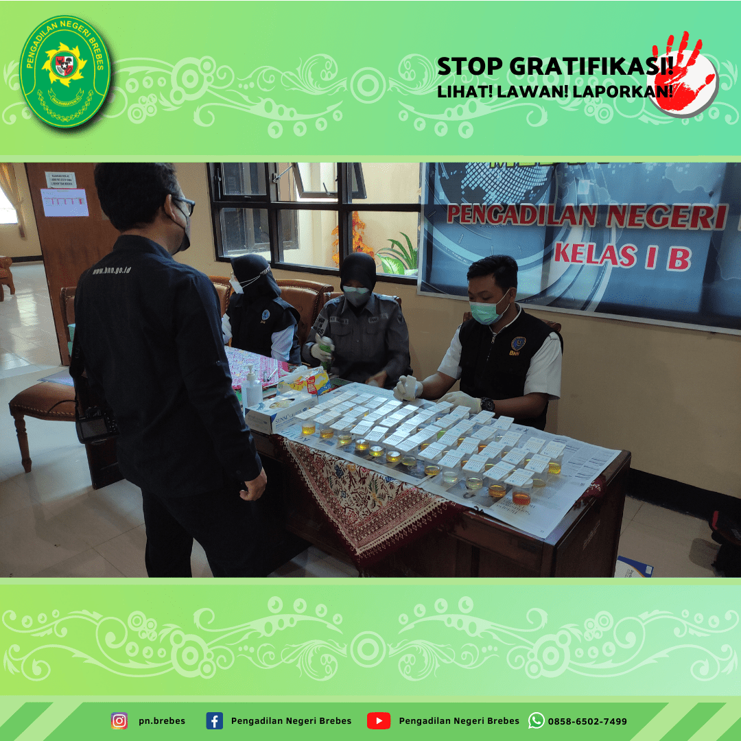 Brebes, 8 Maret 2022. Pengadilan Negeri Brebes Kelas IB melaksanakan kegiatan Tes Urine untuk seluaruh pegawai Pengadilan Negeri Brebes. Pelaksanaan