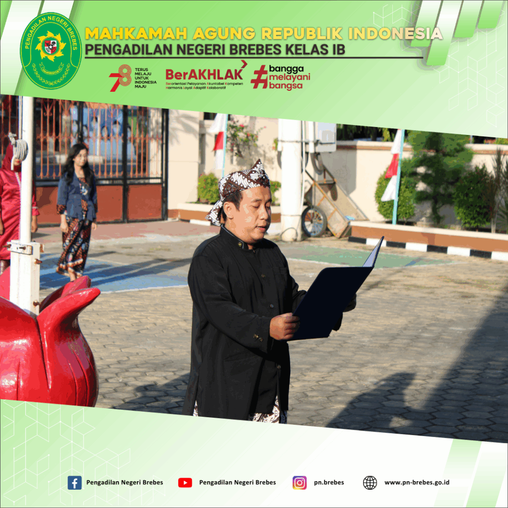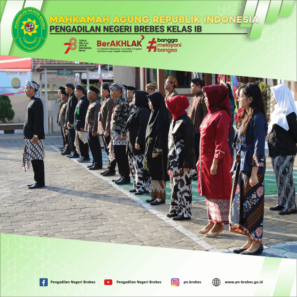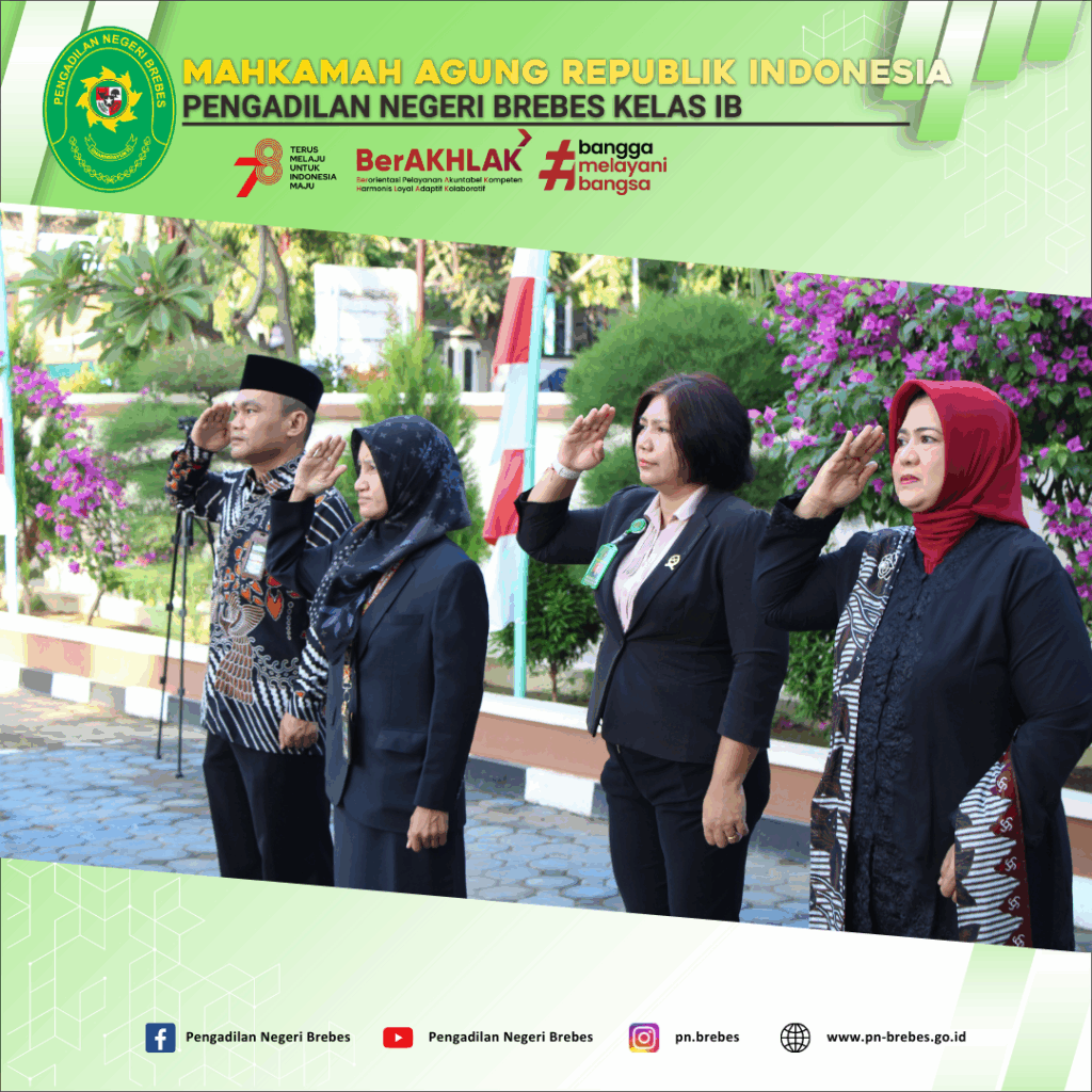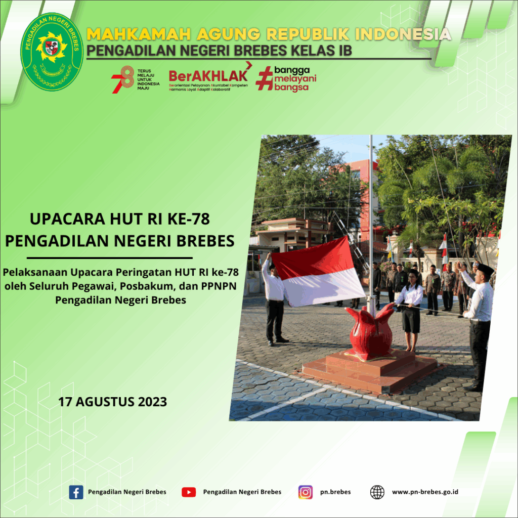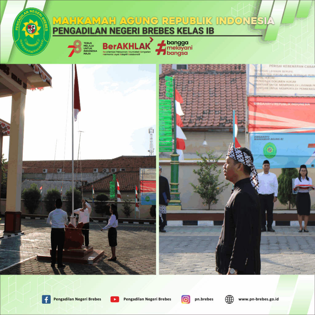 Pelaksanaan Upacara Peringatan HUT RI ke-78 oleh Seluruh Pegawai, Posbakum, dan PPNPN Pengadilan Negeri Brebes